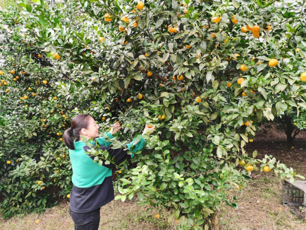 采摘活動(dòng)中,員工們?nèi)艘蝗?,兩人一伙的聚在一棵棵橘子?shù)下,或彎腰、或踮腳,滿(mǎn)足的收獲著春日種下的果實(shí)。