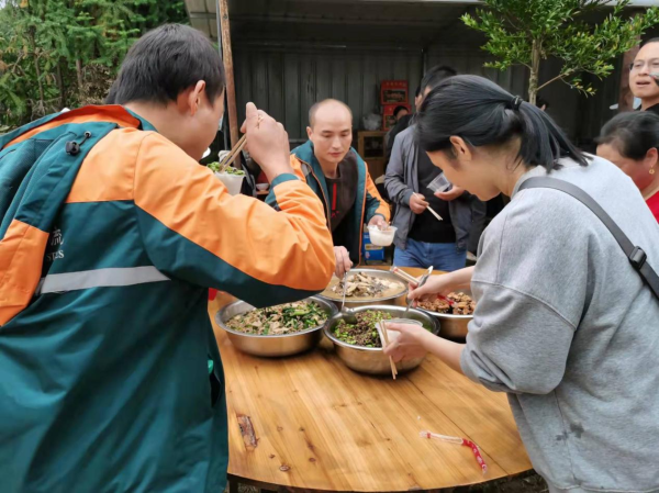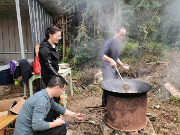 大家分工合作,燒柴、刷鍋、洗菜、炒菜......其樂(lè)融融,樂(lè)此不疲。中午,大家圍坐在飯桌旁開(kāi)心的吃飯,一邊討論著誰(shuí)摘的橘子又大又甜。
