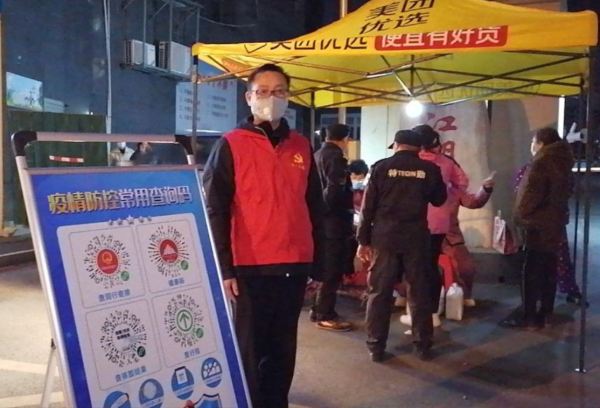 11月4日晚,第一輪核酸檢測開始后,賀進(jìn)立即主動(dòng)請(qǐng)纓與社區(qū)聯(lián)系參與疫情防控工作,協(xié)助社區(qū)開展核酸檢測信息登記、執(zhí)勤值守、現(xiàn)場秩序維護(hù)、幫助查驗(yàn)居民健康碼、核對(duì)身份信息等工作。特別是針對(duì)行動(dòng)不便的老人和孕婦,社區(qū)卡點(diǎn)開通了綠色通道,他主動(dòng)靠前服務(wù),“請(qǐng)大家保持間隔一米,有序排隊(duì),提前準(zhǔn)備好健康碼……”排隊(duì)的大家都能看到那個(gè)穿著紅色志愿者衣服的人,耐心細(xì)心地做好核酸信息采集工作。除了幫助社區(qū)開展核酸檢測,他還承擔(dān)了社區(qū)進(jìn)出的登記工作。他用他的身影筑起了“紅色防線”,讓黨旗在一線高高飄揚(yáng)!