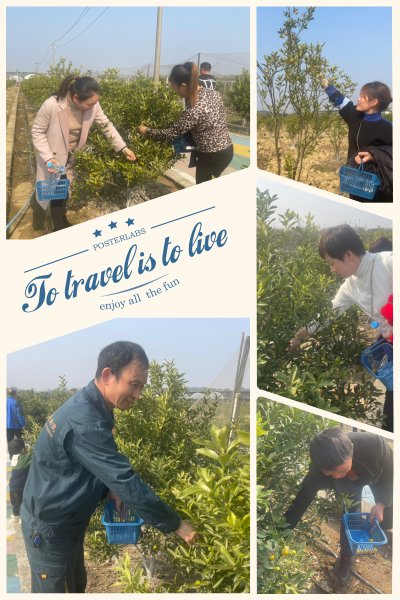 當(dāng)天早上9:30,大家在市公司大樓前集合,乘車前往愛農(nóng)湖生態(tài)園,一路上歡歌笑語,快樂的心情猶如陽光一樣明媚。走進(jìn)金桔園里,放眼望去,一派生機(jī)勃勃,果樹上掛滿了成熟的金桔,真是“一樹金桔十里香,未進(jìn)桔園嘴先饞”,誘人的果色清香,好一副怡人悅目的大自然景色。大家一邊享受著戶外陽光,一邊感受著采摘快樂。員工們紛紛拿起籃子,撥開枝條,貓著腰站在樹下伸手采摘著又大又黃的金桔,有些員工迫不及待地摘下一顆放進(jìn)嘴里,金桔酸甜的汁水在口中綻放開讓人甜的合不攏嘴。采摘現(xiàn)場,大家一邊釆摘,一邊品嘗,在歡聲笑語中感受親近大自然的美妙。