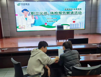 為進(jìn)一步培育職工健康理念,幫助職工了解自身身體狀況,促進(jìn)職工身心健康。12月10日下午,宿州市郵政工會(huì)邀請(qǐng)宿州美年大健康體檢中心兩位主治醫(yī)生,在東3樓會(huì)議室開(kāi)展職工體檢報(bào)告解讀暨健康問(wèn)診活動(dòng)。