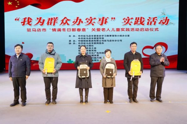 近日,由駐馬店市委宣傳部、駐馬店市總工會(huì)等單位主辦,駐馬店市分公司承辦的“情滿冬日郵春意”關(guān)愛老人兒童實(shí)踐活動(dòng)在駐馬店工人文化宮正式啟動(dòng)。活動(dòng)通過(guò)實(shí)實(shí)在在的“為民、惠民、利民”舉措,引導(dǎo)社會(huì)各界人士積極參與社會(huì)公益事業(yè),讓農(nóng)村留守老人、兒童真真切切感受到黨和政府的關(guān)心。