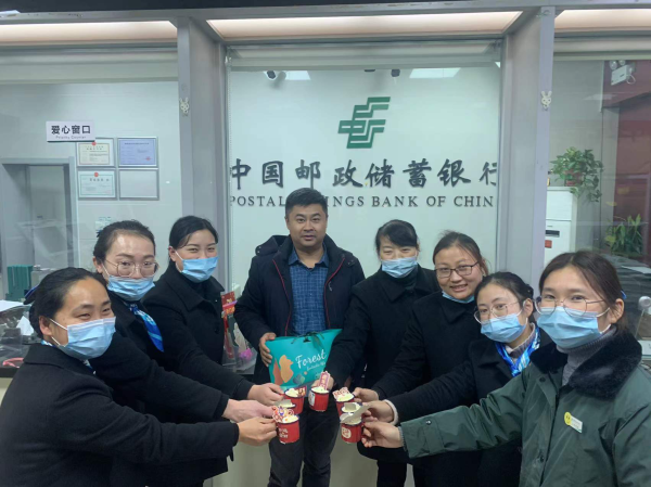 晚上下班后,區(qū)分公司楊偉經(jīng)理又親自驅(qū)車前往各個(gè)網(wǎng)點(diǎn)進(jìn)行慰問,為跨年堅(jiān)守工作崗位的同事送上餃子和祝福,并勉勵(lì)大家在新的一年里,鼓足干勁,再接再厲,共同為完成區(qū)分公司各項(xiàng)工作貢獻(xiàn)自己一份力量。新年即將到來,我們共同為2021年的辛苦付出及2022年的美好憧憬“碰杯”。