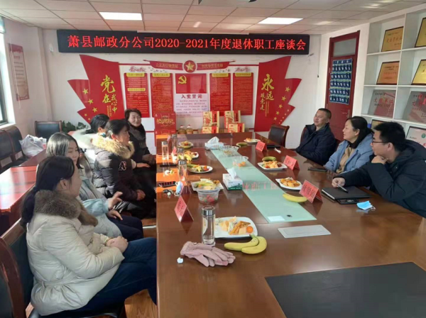 12月30日,蕭縣郵政分公司為即將退休的五位同志舉行了2020-2021年退休職工歡送會。蕭縣分公司領(lǐng)導(dǎo)向退休的職工表達(dá)了美好的祝愿,并且對他們幾十年如一日的努力工作給予充分的肯定和誠摯的感謝。希望他們離崗不離心,歡迎?;丶遥l(fā)揮余熱為蕭縣郵政的發(fā)展建言獻(xiàn)策。希望在職員工也要繼續(xù)努力,為蕭縣郵政分公司的發(fā)展貢獻(xiàn)力量。大家還共同回憶了工作中一起奮斗的點(diǎn)點(diǎn)滴滴,激將退休的職工飽含著對蕭縣分公司領(lǐng)導(dǎo)、同事的不舍之情,共同祝愿蕭縣郵政蒸蒸日上。