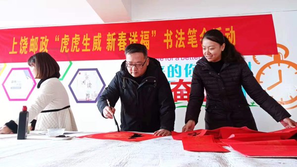 一年一度的新春佳節(jié)即將來(lái)臨,“過(guò)新年,貼春聯(lián)”是中華民族的傳統(tǒng)文化,它象征著吉祥,也表達(dá)出人們對(duì)美好生活的向往。1月12日上午,江西省上饒市郵政工會(huì)以傳承中華傳統(tǒng)文化,營(yíng)造喜慶、祥和的氛圍為目標(biāo),組織開(kāi)展了一次“虎虎生威 新春送?!睍?shū)法筆會(huì)活動(dòng)。