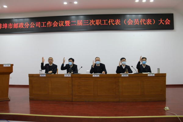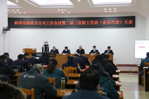 為全面貫徹黨的十九大和十九屆歷次全會(huì)精神,及省分公司工作會(huì)議精神,認(rèn)真落實(shí)以職工代表大會(huì)為基本形式的企業(yè)民主管理制度,總結(jié)2021年工作,部署2022年任務(wù)。1月24日,蚌埠市郵政分公司召開工作會(huì)議暨二屆三次職工代表(會(huì)員代表)大會(huì)。會(huì)議嚴(yán)格按照疫情防控工作要求,結(jié)合公司實(shí)際情況,采取現(xiàn)場會(huì)和電視電話會(huì)議的方式召開,共設(shè)置1個(gè)主會(huì)場,3個(gè)分會(huì)場,80名職工代表參加此次大會(huì)。