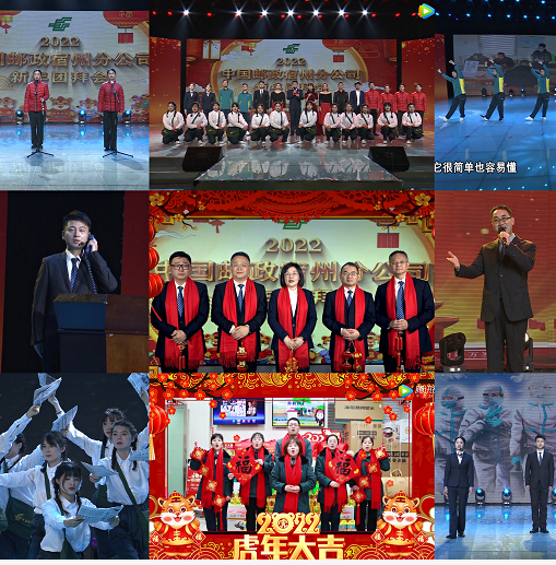 因為抗疫的需要,今年的新春團(tuán)拜會采取線上錄播的方式進(jìn)行。在市分公司領(lǐng)導(dǎo)班子的集體拜年中,團(tuán)拜會拉開了序幕,隨后市、縣各部門通過片花的方式,用各居特色的創(chuàng)意表達(dá)了自己對郵政、對同事的新春祝福。來自各個崗位、各條戰(zhàn)線的職工盡情展示了郵政人的才藝和才華,帶來了合唱、獨唱、舞蹈、三句半等9個形式多樣、內(nèi)容豐富多彩的節(jié)目,充分展現(xiàn)了宿州郵政朝氣蓬勃、銳意進(jìn)取、團(tuán)結(jié)向上的新時代精神風(fēng)貌和辭舊迎新的美好愿景。