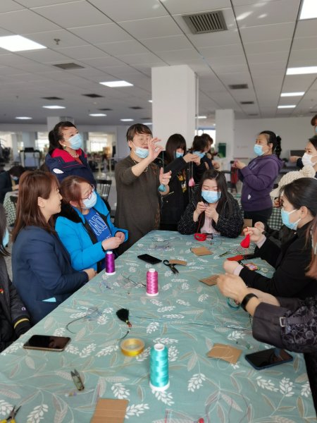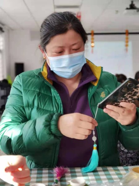 在近兩個(gè)小時(shí)的時(shí)間里,女同胞們認(rèn)真向老師學(xué)習(xí)著手工繩藝編織技藝,她們一個(gè)個(gè)細(xì)心制作,老師示范一步,大家跟著做一步。結(jié)繩看似簡單,其實(shí)每一個(gè)步驟都很關(guān)鍵,錯(cuò)了一步就會(huì)失敗,幾個(gè)看似簡單的動(dòng)作卻能編織出不同的繩結(jié),在老師不厭其煩的指導(dǎo)下,大家一步一步的反復(fù)摸索,現(xiàn)場氛圍很是熱鬧,來自各個(gè)支局互不相識(shí)的員工,從陌生到熟悉,從冷漠到搭把手,彼此之間相互交流,互相學(xué)習(xí),手法逐漸嫻熟起來!一個(gè)小時(shí)左右,一個(gè)個(gè)編織緊密的流蘇制作完成,神奇的繩藝加上裝飾品的搭配,顯示出濃濃的中國風(fēng)以它獨(dú)特的魅力征服了大家!難得的手工DIY機(jī)會(huì)讓大家樂在其中?!翱次业牧魈K完工啦”“我的也好了”聲音此起彼伏,女神們迫不及待迫不及待向在場的人展示自己的手工作品。