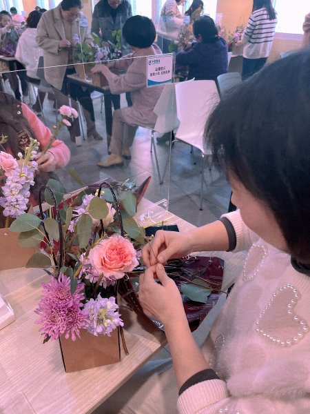 活動現(xiàn)場,美麗的鮮花鋪滿桌面。伴隨著陣陣花香,江西省分公司直屬機關(guān)工會邀請專業(yè)花藝老師,為大家詳細介紹了花材知識、插花藝術(shù)及選購鮮花的常識和注意事項等,并示范了插花技巧。浪漫的粉玫瑰、靈動的紫羅蘭、優(yōu)雅的康乃馨、可愛的小雛菊,各色花卉爭奇斗艷,大家通過靈巧的雙手對花朵們進行修剪、整枝,再根據(jù)不同的色彩和層次搭配在一起,一盆盆融合了自己豐富想象力的插花作品悅?cè)徽宫F(xiàn)。大家手捧著自己精美的插花作品,臉上洋溢著燦爛笑容。