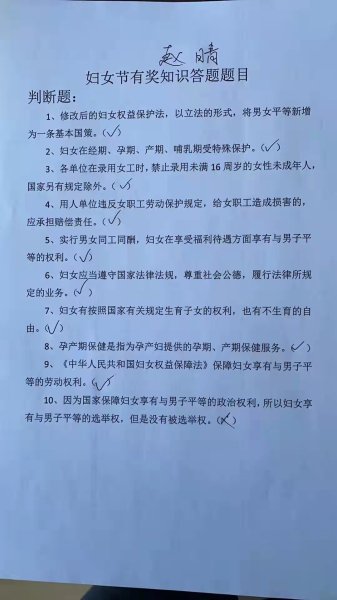 為隆重慶祝國(guó)際“三八”婦女節(jié),發(fā)揮女職工的主力軍作用,豐富女職工業(yè)余文化生活,3月6日,門頭溝區(qū)分公司開(kāi)展“撐起半邊天,我的權(quán)益我做主”慶“三八”婦女節(jié)知識(shí)答題活動(dòng)。