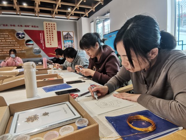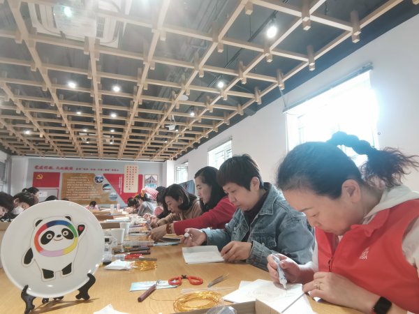 25名女職工代表來到美后肆?xí)r市民文化中心,老師帶領(lǐng)大家了解中國傳統(tǒng)工藝掐絲景泰藍(lán)的發(fā)展歷史和景泰藍(lán)工藝畫的制作方法,并指導(dǎo)女職工們親手制作了一只屬于自己的掐絲琺瑯“冰墩墩”作品。2個小時的活動,掐絲、選色、點藍(lán)、裝裱,女職工們意猶未盡,大家拿著自己制作的“冰墩墩”作品合影留念。