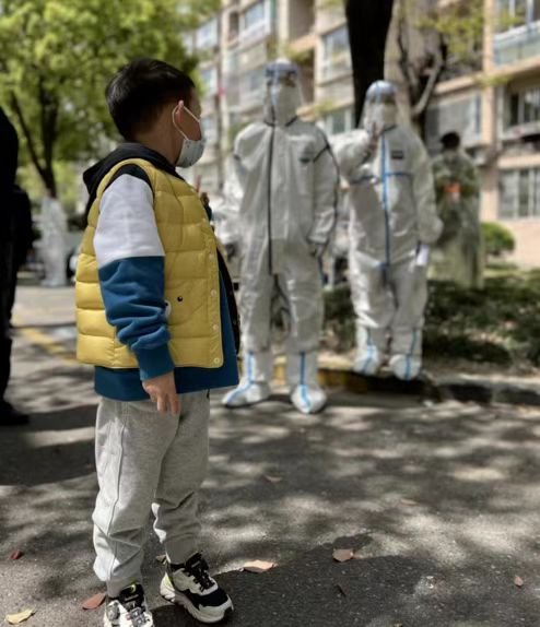 在嚴實的防護服隔離下他們經(jīng)常已是汗流浹背、氣喘吁吁,每當他們年幼的兒子在小區(qū)偶遇這兩位“大白”總是感到既陌生又熟悉,怕兒子會有依賴情緒影響工作夫妻倆只能狠下心短暫停留揮手告別。
