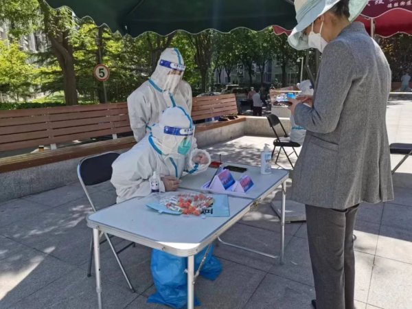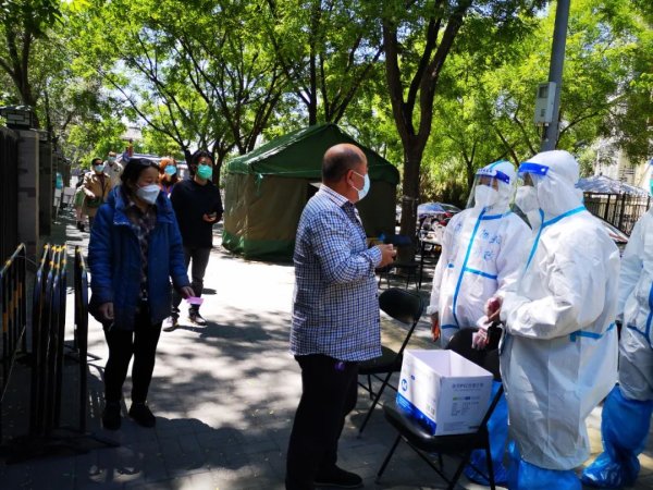 5月13日清晨6點(diǎn), 西城區(qū)分公司組建的 第一支志愿服務(wù)團(tuán)隊(duì)一行十人 沐浴著晨曦的第一縷陽(yáng)光 走進(jìn)了德勝街道德外大街西社區(qū), 協(xié)助社區(qū)開(kāi)展區(qū)域全員核酸檢測(cè)工作。