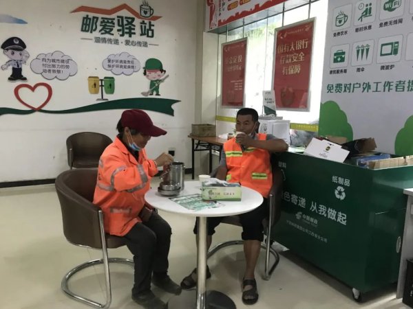 2020年7月,泰和縣總工會(huì)和泰和縣郵政分公司在城西郵政所建起了第一個(gè)“郵愛(ài)驛站”,配備了桌椅、飲水機(jī)、微波爐、報(bào)刊架、應(yīng)急藥品、電冰箱、充電寶等設(shè)備和物品,提供包括休息、就餐、Wi-Fi、手機(jī)充電、飲水、雨傘、應(yīng)急外敷藥品等服務(wù),并安排有專人負(fù)責(zé)日常管理和維護(hù)工作。