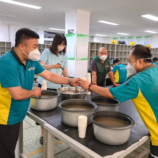 員工們紛紛表示,一杯杯冰鎮(zhèn)綠豆湯讓人心里涼爽,心情舒暢,無畏酷暑,干勁十足。