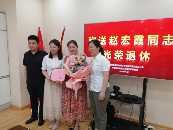 6月24日上午,灣沚區(qū)分公司在五樓會(huì)議室舉辦趙宏霞同志退休歡送會(huì),區(qū)分公司領(lǐng)導(dǎo)、綜合辦及文傳部全體員工到場參加歡送。