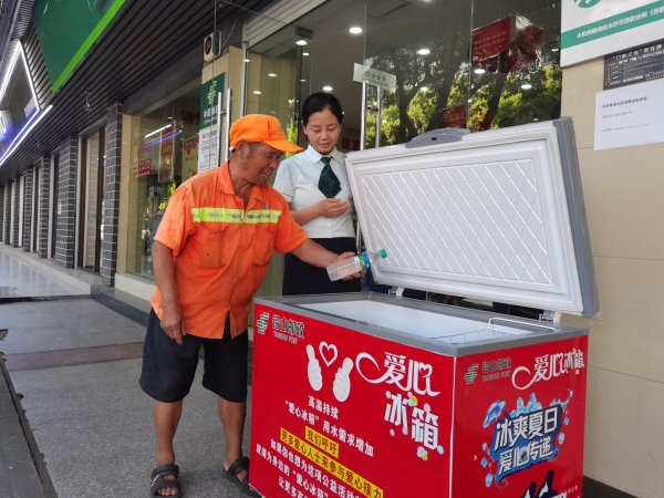 近期,持續(xù)高溫天氣導(dǎo)致全國(guó)各地出現(xiàn)了多起“熱射病”事件。為了給環(huán)衛(wèi)工人、交警同志、外賣小哥、快遞小哥等戶外工作者免費(fèi)送清涼,江西省上饒市鉛山縣郵政分公司在獅江大道網(wǎng)點(diǎn)門口設(shè)置了“愛心冰箱”,免費(fèi)為戶外工作者供應(yīng)冷飲,在這個(gè)炎熱的夏天為他們送去了一絲清涼。