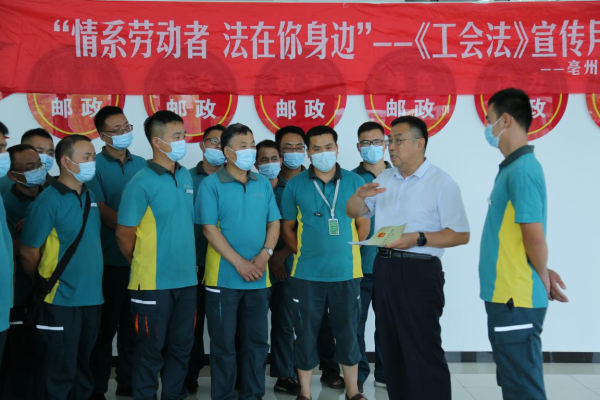 為進(jìn)一步維護(hù)工會(huì)會(huì)員的合法權(quán)益,提高會(huì)員知法、懂法、用法意識(shí),近日,亳州市郵政工會(huì)邀請(qǐng)市總工會(huì)張學(xué)峰主席到神農(nóng)谷攬投站,為全體攬投人員開(kāi)展了“工會(huì)法”知識(shí)講座,張學(xué)峰主席就新的《工會(huì)法》條款進(jìn)行了解讀授課。