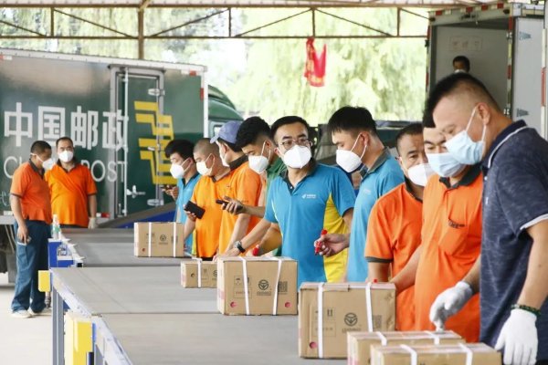 8月3日9點(diǎn)40分,碧空如洗,驕陽似火。當(dāng)記者走進(jìn)平谷區(qū)農(nóng)特產(chǎn)品展銷中心分揀場地時(shí),來自北京各區(qū)郵政分公司的駐點(diǎn)員工已在場內(nèi)長長的運(yùn)輸皮帶機(jī)邊準(zhǔn)備接車、分揀大桃,而皮帶機(jī)終端則通向各區(qū)分公司的郵車車廂。北京市分公司市場部的閆雷告訴記者,為保障大桃運(yùn)輸時(shí)效,各區(qū)分公司共抽調(diào)人員165名,組成領(lǐng)導(dǎo)專班、現(xiàn)場專班、聯(lián)合開發(fā)戰(zhàn)隊(duì),駐點(diǎn)平谷開展“大會(huì)戰(zhàn)”。北京市分公司運(yùn)管部的張新民在一旁說:“我7月1日就來了,這場會(huì)戰(zhàn)要持續(xù)3個(gè)月。雖然離市里不遠(yuǎn),但我已經(jīng)有10多天沒回家了。這段時(shí)間,我們吃住都在合作社。”