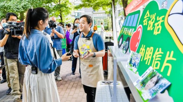 居民還可以寫(xiě)下明信片寄語(yǔ),送給未來(lái)的自己或者身邊的親朋好友?!霸谖业挠洃浝锩餍牌侵荒軐?xiě)字的,沒(méi)想到現(xiàn)在的明信片還可以添加我們的聲音,聽(tīng)見(jiàn)我們的祝福,這是一個(gè)非常感人的地方。”珠江紫臺(tái)社區(qū)的居民感嘆道。