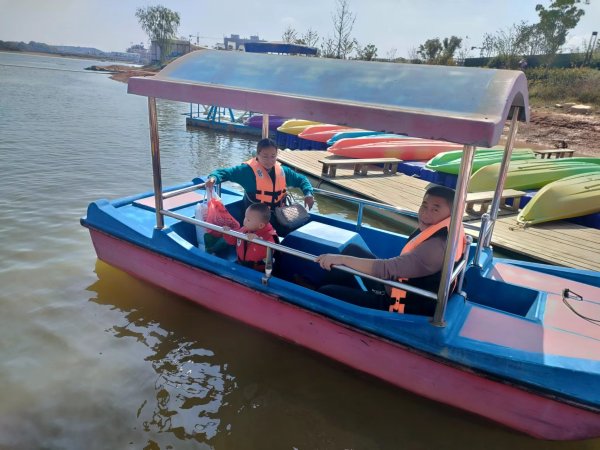 湖面上,電動游船、皮筏艇在湖面蕩漾,他們徜徉于湖天之間感受著與自然融為一體的感覺。