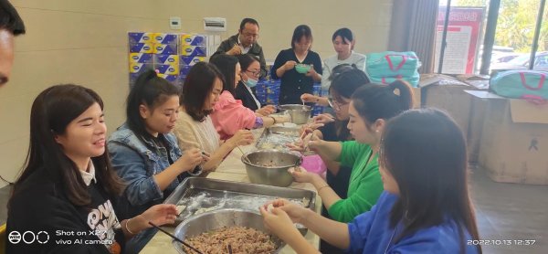 首先是包餃子,機(jī)關(guān)同事利用午休時(shí)間包好餃子,大家分工協(xié)作,配合默契,紛紛使出看家本領(lǐng),剁餡、揉餡、包餃子、上盤……大家表情專注、動作嫻熟,場面充滿了濃濃的溫馨氣氛。