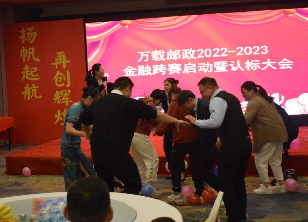 為了讓員工在緊張的工作中放松心情,統(tǒng)一思想,凝聚共識(shí),全身心地投入到金融跨賽中,2022年11月2日晚上,江西省宜春市萬載縣分公司在宜嘉酒店召開了2022-2023年金融跨賽啟動(dòng)會(huì),公司領(lǐng)導(dǎo)班子、后臺(tái)人員、寄遞事業(yè)部、網(wǎng)點(diǎn)不當(dāng)班人員共計(jì)130余人參加了啟動(dòng)會(huì)。