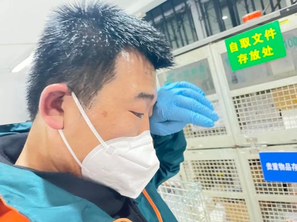 在分揀場地,投遞員胡麒和李天嬌一邊迅速碼放著郵件,一邊介紹說:“這是剛剛從‘老客戶’人教社那里攬收的200來件郵件,有教材、習(xí)題冊、音像制品......”十多分鐘后,一輛出口郵車將會把這些郵件裝運發(fā)往全國各地。雖然雨中的室外溫度只有10攝氏度左右,但他們頭上仍掛滿了細(xì)密的汗珠?!半p11”期間,很多電商公司大促,為了應(yīng)對郵件攬收高峰,他們每天都會提前聯(lián)系好客戶,協(xié)調(diào)好各家攬收時間,提高攬收效率。