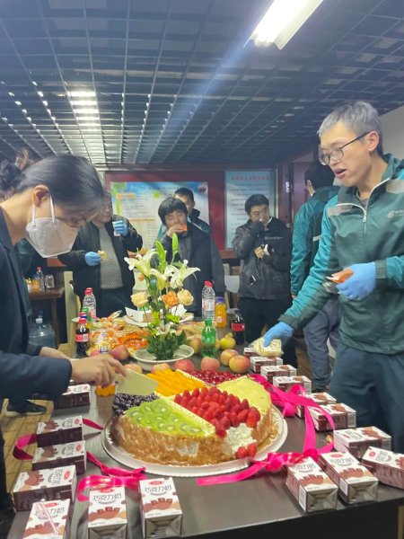 “為公為民保暢通,全員奮進(jìn)戰(zhàn)高峰!”二十多名投遞員圍在一張堆滿零食、飲料和擺放著一個大蛋糕的桌子前共同舉杯,11月11日20點,走進(jìn)北京市海淀區(qū)魏公村郵政支局?jǐn)埻恫慷堑摹奥毠ば〖摇睍r,看到這樣一幅火熱的景象。每年的這天,魏公村支局都會利用投遞間隙舉辦一場生日會,為忙碌的投遞員加油鼓勁,也給奮斗的時光增添一絲儀式感。