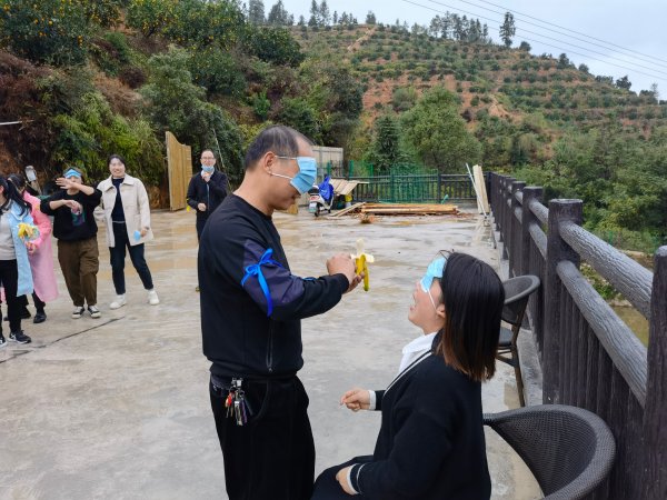 蒙眼吃香蕉:體現(xiàn)整個隊員團結(jié)一致、密切合作共同克服困難的團隊精神,同時也增強隊員間的相互信任和理解。