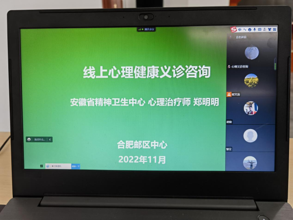 為持續(xù)關(guān)愛職工心理健康,緩解疫情等特殊時(shí)期的心理壓力,11月25日下午,合肥郵區(qū)中心局工會(huì)舉辦線上心理健康義診咨詢活動(dòng),邀請(qǐng)安徽省精神衛(wèi)生中心心理治療師圍繞疫情時(shí)期心理健康呵護(hù)、工作壓力緩解和睡眠障礙克服等進(jìn)行了義診及互動(dòng)交流。合肥郵區(qū)中心有60余位職工參與了義診咨詢活動(dòng)。