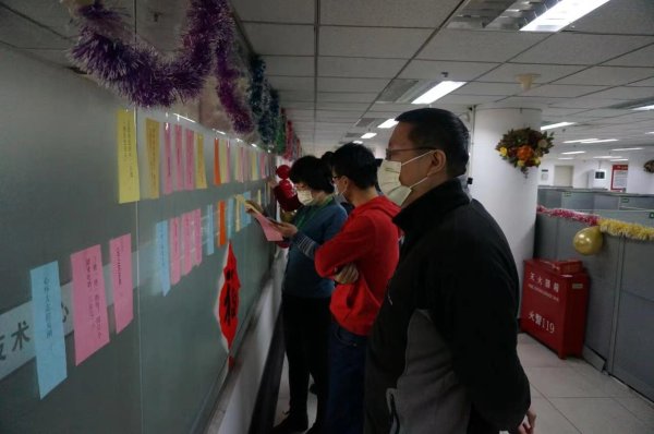 工會充分利用走廊過道的優(yōu)勢,布置了現(xiàn)場,近兩百條的五彩謎條隨風(fēng)飄揚,營造了良好的節(jié)日氛圍。活動一開始便吸引了大批職工前來參與,大家駐足在燈謎前絞盡腦汁思考著答案?;顒蝇F(xiàn)場不時的還能聽見為猜出答案而歡呼雀躍的聲音。職工們穿梭其間,流連忘返,構(gòu)成了一道獨特的風(fēng)景畫。