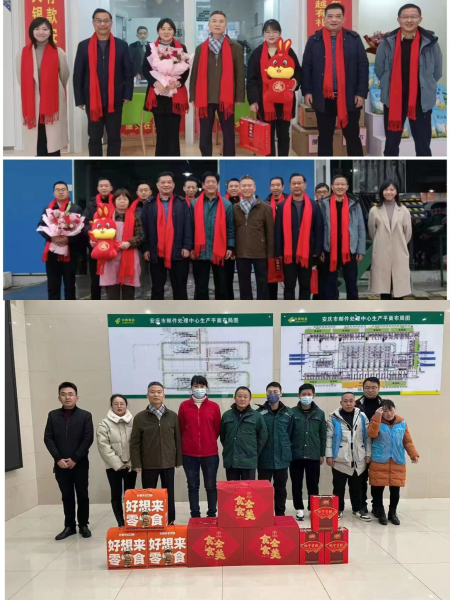 1月22日,大年初一,在這團圓喜慶的日子里,安慶市分公司黨委書記、總經(jīng)理一行來到桐城郵件處理中心、桐城呂亭支局、安慶郵區(qū)中心、潛山舒州路所、潛山寄遞營業(yè)部等網(wǎng)點,為春節(jié)期間奮戰(zhàn)在工作崗位上的一線職工送去了慰問品和新年的祝福,鼓勵各單位要全力抓好旺季業(yè)務(wù)發(fā)展,高標(biāo)定位,趁勢而上,同時要求各單位切實做好服務(wù)后勤保障工作,讓基層員工工作舒心。