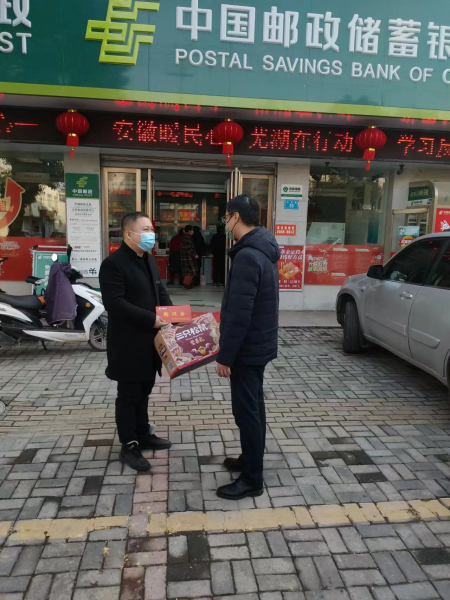 蕪湖郵政城北投遞部、城東普郵投遞部在春節(jié)來(lái)臨前夕開(kāi)展愛(ài)心郵路新春送溫暖活動(dòng),為幫扶對(duì)象朱麟潔、王躍南、王承勇送上水果和牛奶等慰問(wèn)品,希望他們能過(guò)上一個(gè)愉快的新春佳節(jié)。