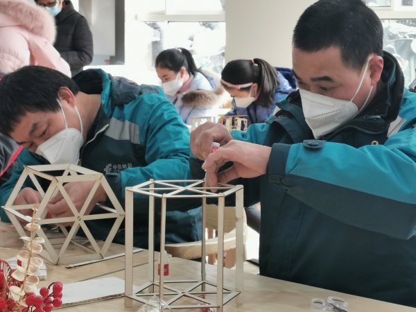 此次活動由專業(yè)老師教大家制作精美的花草燈籠和絨花。員工們一個個熱情參與,拼接竹骨、膠水固定、糊上花草紙,用制作一盞花草古風燈的時間領會穿越千年的古韻悠然。