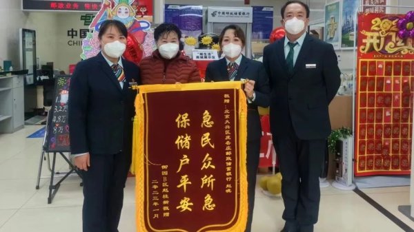 為向支行工作人員表示感謝,趙阿姨為龐各莊支行全體員工送上錦旗,為郵政人熱心周到服務(wù)點(diǎn)贊?!耙f靠譜還得是郵政?!倍潭痰囊痪湓捠菍︵]政人莫大的鼓舞,在以后的工作中,龐各莊支行將繼續(xù)秉承“人民郵政為人民”的初心,堅(jiān)持服務(wù)好每一位用戶!(北京郵政工會)