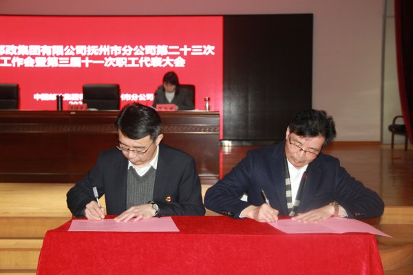 會(huì)議期間,市分公司魏群總經(jīng)理與工會(huì)主席李捷平簽訂了《2023年度撫州市分公司為員工辦實(shí)事承諾書》和《撫州市分公工資集體協(xié)商專項(xiàng)協(xié)議》;與市寄遞事業(yè)部副總經(jīng)理吳愛明和金溪縣分公司總經(jīng)理鄒曉虎簽訂了《平安建設(shè)(綜治工作)責(zé)任狀》。 (江西省郵政工會(huì))