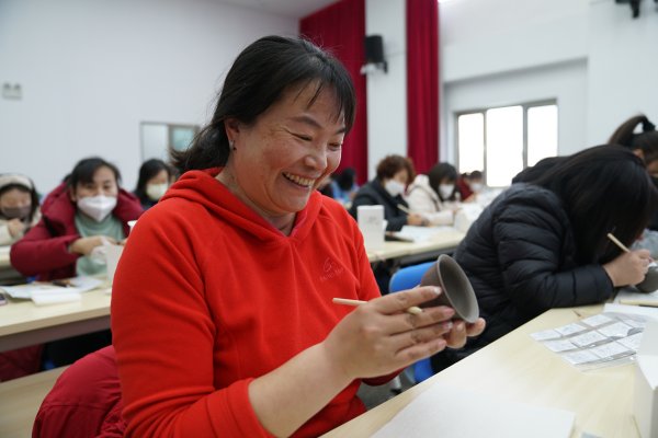 舉辦“雕刻定窯瓷器,品鑒非遺文化”定窯手作體驗活動——描花型、刻邊線、剔刻、落款......一系列看似復(fù)雜的操作,在定窯非遺傳承匠人的指導(dǎo)下有序完成,發(fā)行女工們化身為手工大師,大膽創(chuàng)意、自由嘗試,在與泥土的對話中感受匠心的療愈力量,一件屬于自己的定窯器物在精心的雕刻下誕生?!敖裉焓俏业谝淮误w驗瓷器制作,跟著定窯非遺傳承人一起,學(xué)習(xí)歷史,手把手教我獨特的雕刻技藝,我感覺非常開心!很期待屬于我自己的作品”參加活動的女工們臉上都露出了由衷的笑容。