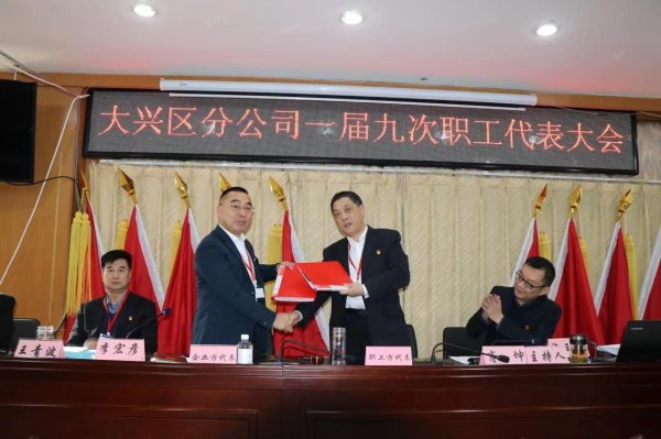 3月3日,大興區(qū)分公司隆重召開了第一屆九次職工代表大會(huì)。 大會(huì)聽取審議了《大興區(qū)分公司2022年行政工作報(bào)告》,審議并通過了《2022年財(cái)務(wù)計(jì)劃執(zhí)行情況》、《2022年人工成本、教育經(jīng)費(fèi)計(jì)劃執(zhí)行情況的報(bào)告》、《2022年黨風(fēng)廉政建設(shè)報(bào)告》、《2022年辦實(shí)事落實(shí)情況和2023年辦實(shí)事立項(xiàng)的報(bào)告》,會(huì)上簽訂了2023年工資集體協(xié)商協(xié)議。