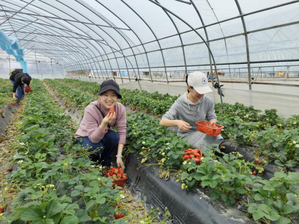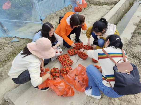 動(dòng)結(jié)合郵政惠農(nóng)活動(dòng),特意選在南陵縣黃墓村黨組織領(lǐng)辦合作社的草莓大棚舉行。3月8日下午1點(diǎn),郵政巾幗們準(zhǔn)時(shí)出發(fā),踏上快樂(lè)采摘之旅。一踏入草莓大棚,清新的草莓果香撲鼻而來(lái),一派清新的田園氣息,放眼望去,鮮紅欲滴的草莓果實(shí)在一壟壟碧綠的草莓秧中若隱若現(xiàn),紅綠交映,一片生機(jī)勃勃。大家手提小果籃,沿著整齊的草莓田,化身快樂(lè)的小果農(nóng),一邊采摘品嘗,一邊相互交流,氣氛輕松活潑,體驗(yàn)著采摘草莓、品嘗鮮果的樂(lè)趣,現(xiàn)場(chǎng)快樂(lè)與熱情四溢。經(jīng)過(guò)一個(gè)多小時(shí)的采摘后,大家都有了豐碩的成果,每個(gè)人的臉上充滿著幸福的笑容和活力。