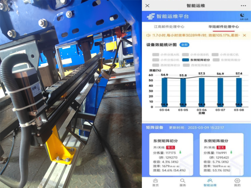 在日常管理過程中,處理中心值班人員利用SCADA系統(tǒng)和智能運維平臺發(fā)現(xiàn)設備效能指標異常,及時溝通反饋。一線接發(fā)人員通過信息系統(tǒng)查看在途和進局車輛的主要流量流向、郵件規(guī)格、集包情況、貴品等信息,合理安排卸車垛口。汪磊提出通過分析無物理格口、無信息、未半圈落格郵件主要路向,定期反饋給業(yè)務部門完善分揀方案、現(xiàn)場管控等相關建議,實現(xiàn)了業(yè)技深度融合、齊抓共管的良性循環(huán),設備開機時間時長平均壓縮4.25小時,減少了設備磨損,件均電費下降20%。
