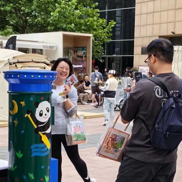 活動(dòng)主辦方與中國(guó)郵政合作推出了專屬明信片和郵戳。不少市民朋友被這些郵政專屬產(chǎn)品吸引,前來(lái)體驗(yàn)。
