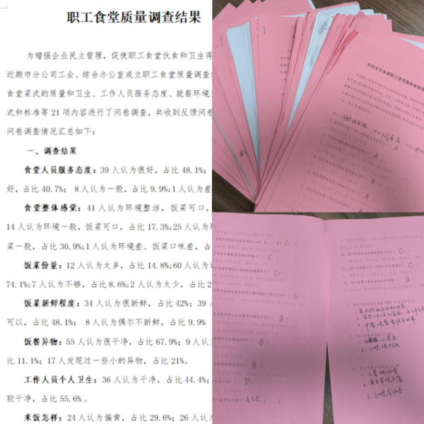 為進(jìn)一步增強(qiáng)企業(yè)民主管理,提高職工食堂餐飲質(zhì)量和服務(wù)水平,全面了解職工對(duì)食堂菜品質(zhì)量、服務(wù)質(zhì)量、用餐環(huán)境等膳食服務(wù)工作的滿意度,近期,安慶市郵政工會(huì)開展了食堂滿意度問卷調(diào)查活動(dòng)。