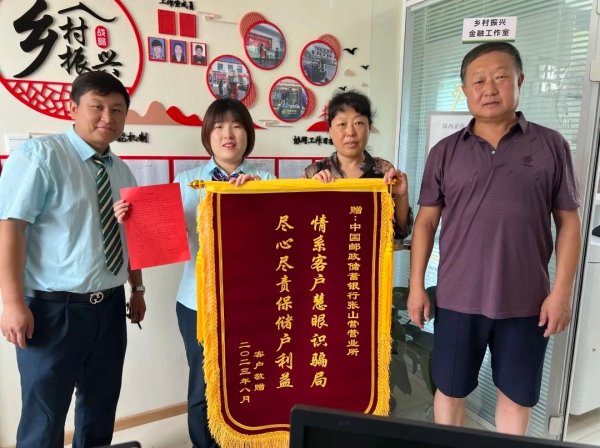 近日,老人的子女帶著感謝信和錦旗來到張山營支行,向支行全體工作人員表示感謝。此次幫助客戶成功識破詐騙,是延慶郵政盡心守護(hù)客戶“錢袋子”的一個縮影。長期以來,延慶郵政員工立足本職崗位,以高度的社會責(zé)任感和專業(yè)嚴(yán)謹(jǐn)?shù)墓ぷ髯黠L(fēng),不斷強(qiáng)化對電信詐騙的辨識與截獲意識,不斷提升防范能力,努力維護(hù)客戶的資金安全。(北京郵政工會)