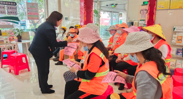 戶外勞動(dòng)者服務(wù)站建在吉慶路營(yíng)業(yè)所大廳內(nèi),為大家準(zhǔn)備了飲水機(jī)、手機(jī)充電器、免費(fèi)讀物、微波爐、急救包、雨傘等,日常需要的東西在這里基本都有,像一個(gè)溫暖的家。工會(huì)主席高建彩熱情地給大家介紹了站里的物品都無(wú)償提供給大家使用,贏得了大家的一片喝彩。吉慶路營(yíng)業(yè)所理財(cái)經(jīng)理劉楊還給大家上了一場(chǎng)防詐騙微課堂,提醒大家接到異常電話一定要來(lái)咨詢她,子女在外,有需要幫助的也來(lái)找她,之后還給大家發(fā)放了帽子、手套等小禮品。