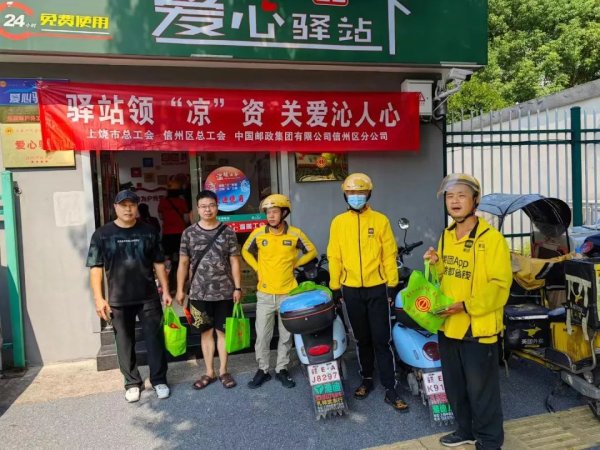 自今年8月以來,上饒市總工會(huì)、信州區(qū)總工會(huì)、信州區(qū)郵政分公司聯(lián)合開展了三期“驛站領(lǐng)‘涼’資 關(guān)愛沁人心”活動(dòng),借助“郵愛驛站”愛心平臺,為高溫下的戶外工作者們提供防暑降溫物資。這也是上饒市信州區(qū)分公司持續(xù)深入開展“我為群眾辦實(shí)事”的舉措之一,通過持續(xù)建設(shè)好郵愛驛站,為戶外勞動(dòng)者提供“累了可歇腳、沒電來充電、渴了有水喝、飯涼能加熱”的貼心服務(wù)。(江西省郵政工會(huì))
