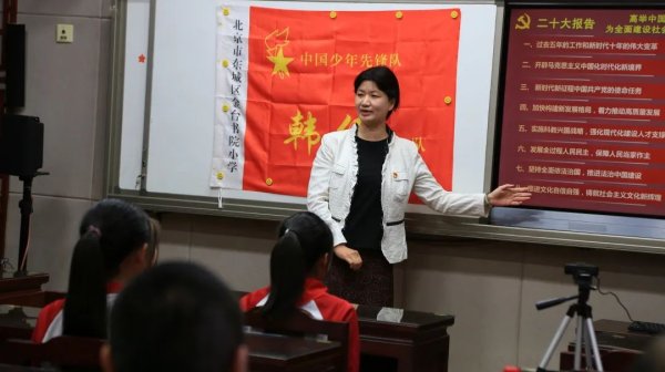 為迎接中國少年先鋒隊(duì)建隊(duì)74周年,10月9日,位于北京市東城區(qū)的金臺書院小學(xué)舉辦了一場名為“我和先鋒面對面”的主題隊(duì)會。正值第54個(gè)世界郵政日,西城區(qū)分公司和中南海郵政支局的全國勞動(dòng)模范韓偉為“韓偉英雄中隊(duì)”的孩子們,以及金臺書院的全體師生提供了建隊(duì)74周年的賀禮——《賞郵票 跟黨走》教育課程。 自2021年金臺書院小學(xué)成立“韓偉英雄中隊(duì)”以來,韓偉多次來到金臺書院小學(xué),他就像孩子們的知心叔叔,用自身的工作經(jīng)歷和經(jīng)驗(yàn)與孩子們分享和交流,將“堅(jiān)持做好每一件平凡小事”的勞模工匠精神傳遞給孩子們,在他們心中播下“勞動(dòng)光榮”的種子。 “韓偉英雄中隊(duì)”的同學(xué)們深入了解和學(xué)習(xí)韓偉叔叔的事跡后,深刻感受到堅(jiān)持原則的重要性。因此,隊(duì)員們都積極地去踐行和設(shè)定個(gè)人的小目標(biāo),自覺培養(yǎng)自律的良好習(xí)慣,并通過實(shí)際行動(dòng)展示要像韓偉叔叔一樣把每一件看似平凡的小事都做到最好的決心?!绊n偉英雄中隊(duì)”曾多次獲得東城區(qū)少先隊(duì)優(yōu)秀中隊(duì)、北京市星級優(yōu)秀中隊(duì),以及全國紅領(lǐng)巾中隊(duì)的榮譽(yù)稱號。