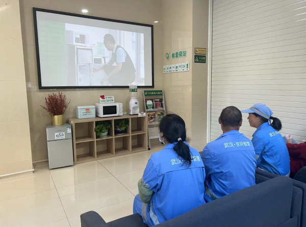 水果湖郵愛(ài)驛站設(shè)置在網(wǎng)點(diǎn)的一角,戶(hù)外工作者時(shí)常會(huì)來(lái)歇歇腳,小憩一下,補(bǔ)充點(diǎn)水分。為豐富服務(wù)內(nèi)容,每天網(wǎng)點(diǎn)電視會(huì)滾動(dòng)播放防詐騙視頻、郵愛(ài)驛站宣傳片、勞模宣傳片等,讓?xiě)敉夤ぷ髡咴诮o身體“充電”的同時(shí),也能通過(guò)觀影,給精神世界“充電”。
