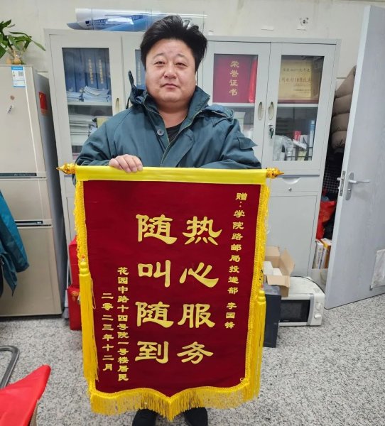 就在當(dāng)天,用戶(hù)李女士來(lái)到學(xué)院路投遞部為投遞部主任李國(guó)峰送上印有“熱心服務(wù) 隨叫隨到”8個(gè)字的錦旗。前不久,李國(guó)峰接到李女士查詢(xún)報(bào)紙的來(lái)電,經(jīng)過(guò)溝通,他了解到該用戶(hù)地址并不在學(xué)院路投遞范圍內(nèi)。面對(duì)此種情況,他很爽快地答應(yīng)用戶(hù)幫其尋找,并很快將報(bào)紙送到用戶(hù)家中。一個(gè)小小的舉動(dòng),讓用戶(hù)很是感動(dòng),于是李女士制作了錦旗并親自送到投遞部,向李 國(guó)峰表示感謝。