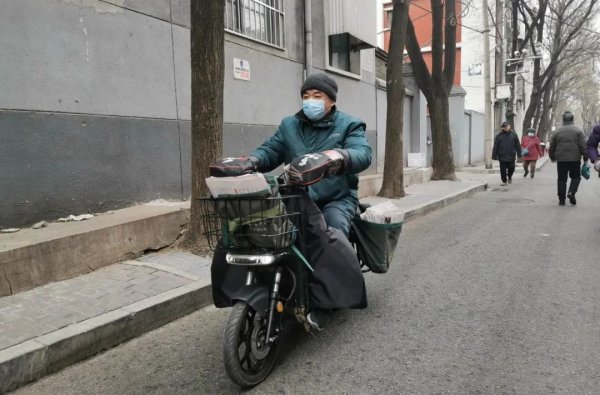 上午9點(diǎn)45分,國(guó)光柱來(lái)到了南營(yíng)房一處老居民區(qū),這里的樓房陳舊,道路曲折。他輕車(chē)熟路地把車(chē)停到一棟樓門(mén)前,快速地將分好的報(bào)紙和信件拿在手里。由于這里的居民年紀(jì)較大,國(guó)光柱一戶(hù)一戶(hù)上門(mén)投遞。他的動(dòng)作雖然凍得有些僵硬,但依然堅(jiān)定有力。“光柱,過(guò)年好??!”街坊四鄰看到他都露出親切的笑容,并給他送上了新春的祝福。